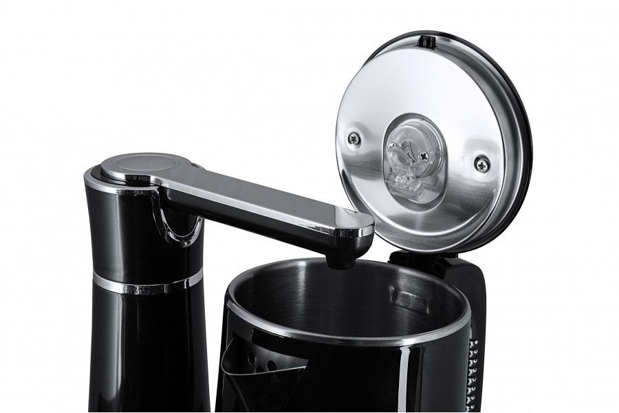 - На чайном столике расположен кран подачи воды и два чайника, для кипячения и заварочный. Заварочному чайнику можно включить режим постоянного подогрева (~ до 60°С). Чайник кипячения изотермический – меньше греется, лучше сохраняет температуру. Подача воды в него возможна без открытия крышки. Нагрев воды в чайнике включается вручную, либо автоматически, в случае использования функции регулировки температуры воды. Автоотключение нагрева при температуре 100°С.