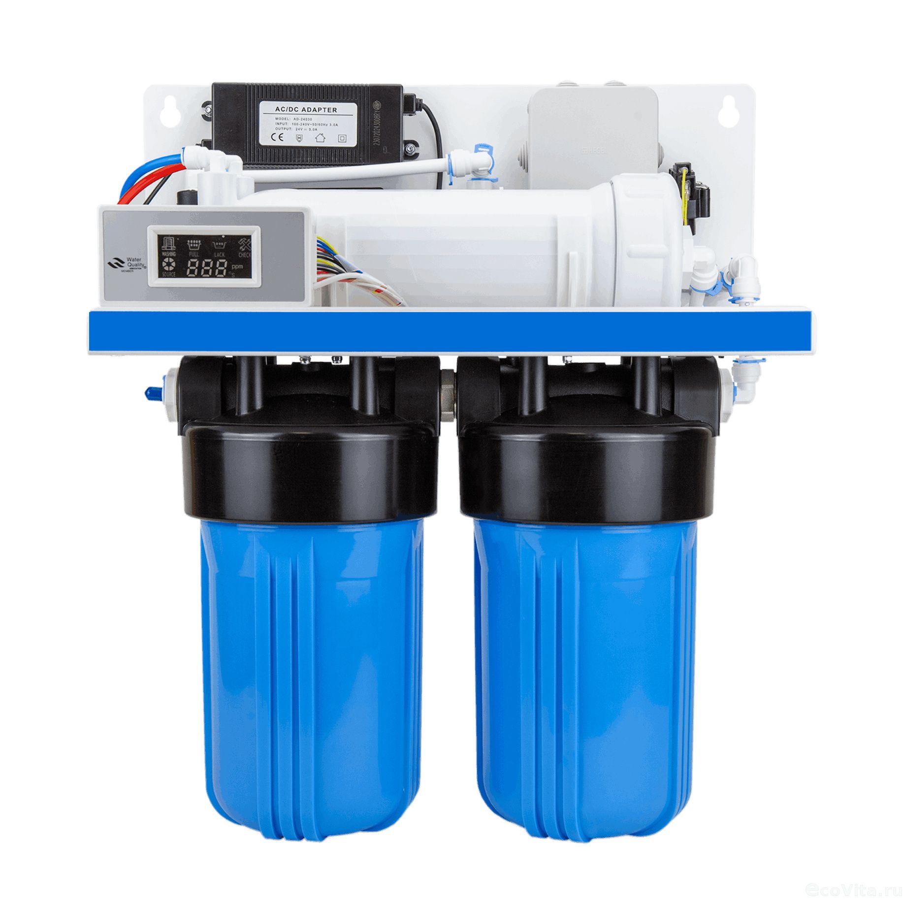 Ecovita Osmo 3-600P – система водоочистки с обратным осмосом, предназначенная для коммерческого использования. Эффективно очищает питьевую воду, устраняя вредные примеси: механические загрязнения (ржавчина, песок, ил и др.), растворённые вещества (свободный хлор, хлорорганику, тяжёлые металлы, соли жёсткости), а также бактерии, вирусы и прочие органические и неорганические соединения.