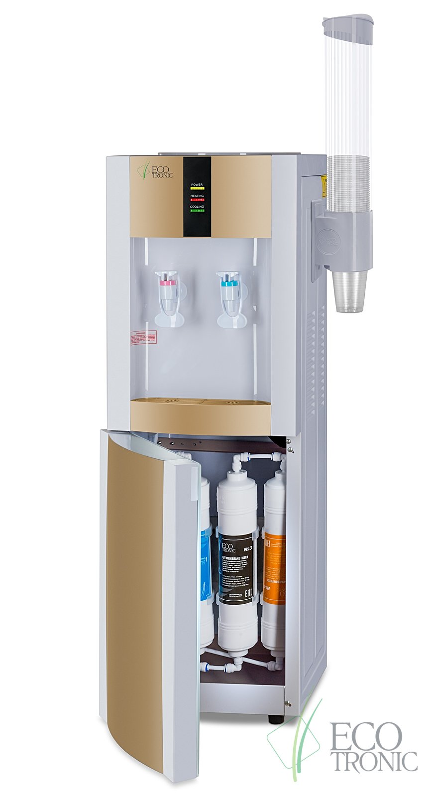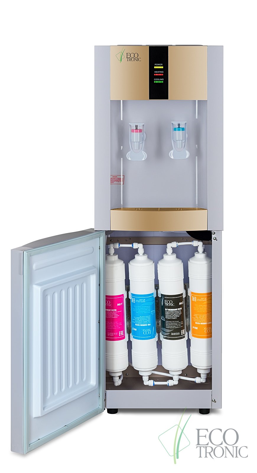 Пурифайер Ecotronic H1-U4LE White-gold может заменить кулер, благодаря функциям нагрева и охлаждения воды. Предназначен для использования в офисах, домах и на дачах. Система фильтрации проста в обслуживании при своевременной замене картриджей.