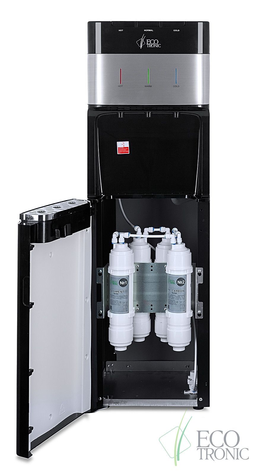 Пурифайер Ecotronic M30-U4LE black+silver напольного типа с ультрафильтрационной системой очистки воды. Подключается к водопроводной системе, очищая воду от вредных бактерий и соединений.