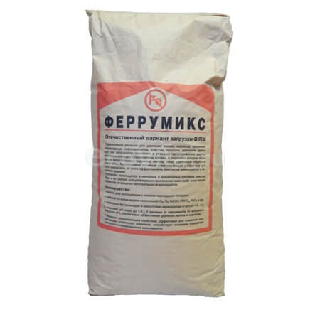 Фильтрующий материал Феррумикс предназначен для удаления железа, марганца, сероводорода, нефтепродуктов, аммиака и т.п. Рекомендован для применения, как в напорных, так и в безнапорных системах фильтрации. Не требует химических реагентов для восстановления. Необходима периодическая обратная промывка.