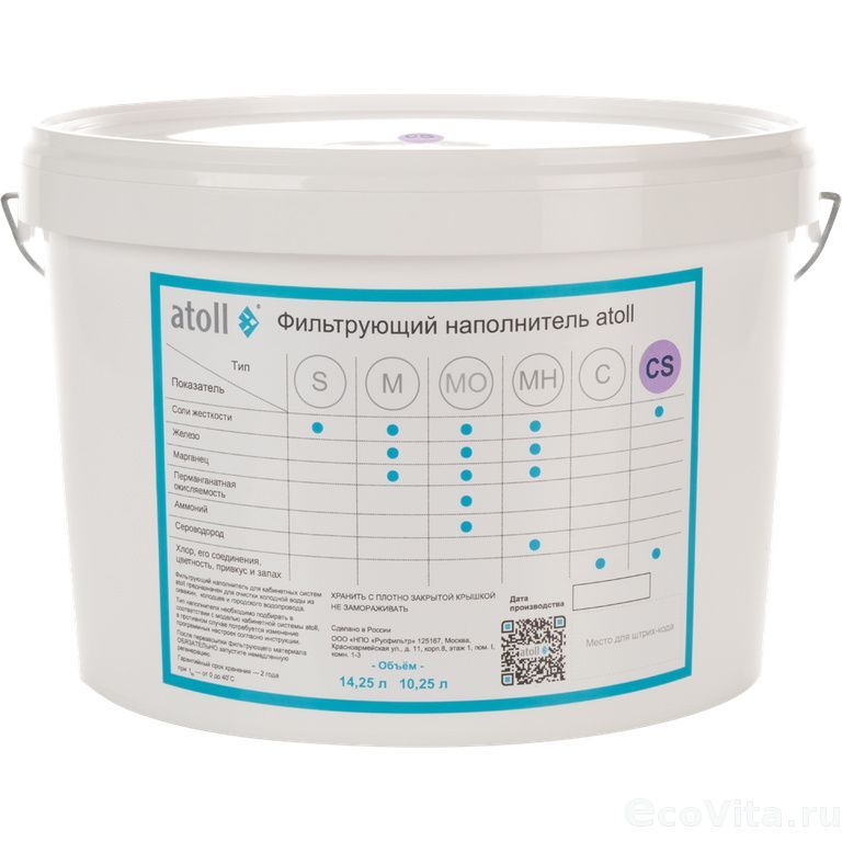 Многокомпонентная смола Atoll CS (10.25л) специально разработанная для условий городских квартир. Сочетает в себе свойства сорбционного фильтра и умягчителя. Очищает воду от солей жесткости и соединений хлора, его цвета, вкуса и запаха. Подходит для всех засыпных фильтров.