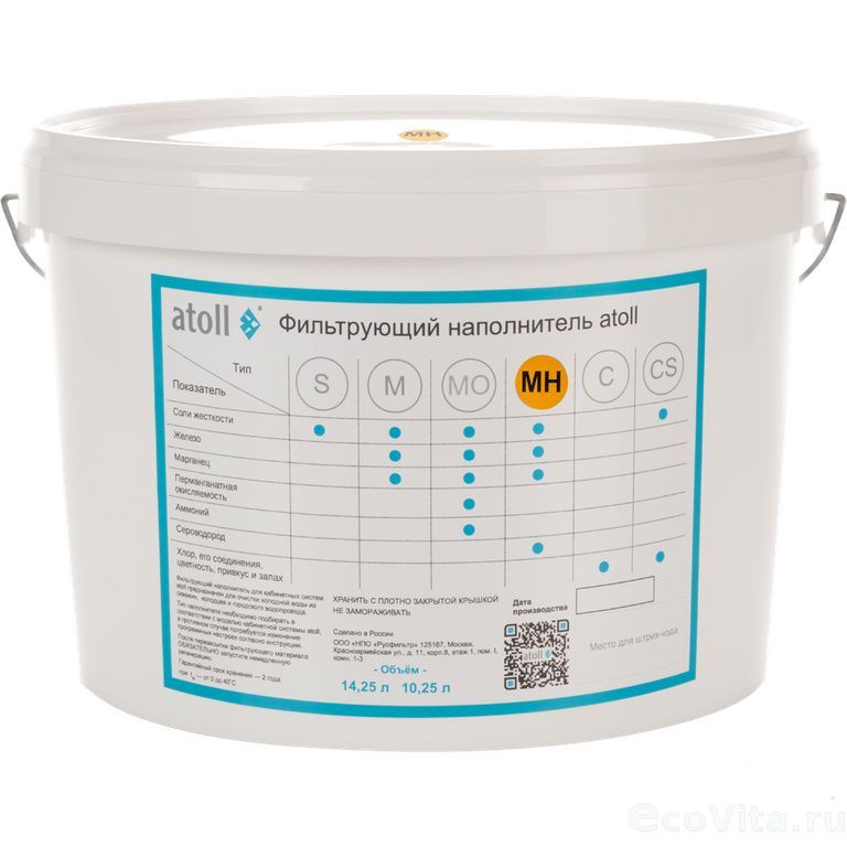 Многокомпонентная смола для фильтров Atoll MH ведро 10.25 литра. Подходит для удаления из воды ионов жесткости, железа, марганца и сероводорода. Подходит для всех засыпных фильтров.