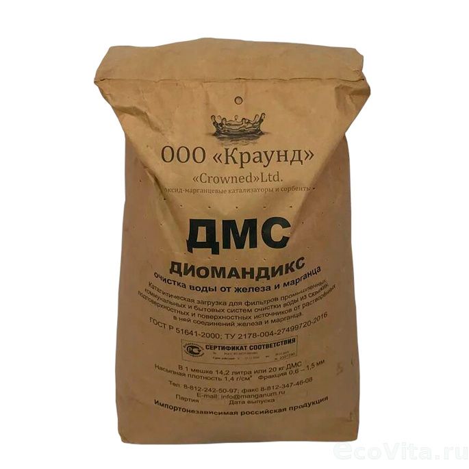Диомандикс (лайт) 0.3-0.8 (14 л) – каталитическая загрузка, очищающая воду от растворенного железа и марганца в системах промышленного и бытового назначения.