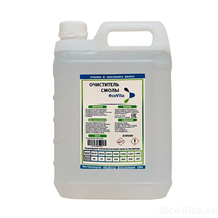 Очиститель смолы Ecovita 5 кг предназначен для очистки гранул ионообменной смолы от оксидированного железа, её бактерицидной обработки, удаления осадков из клапана блоков управления фильтров. Обладает дезинфицирующим эффектом.