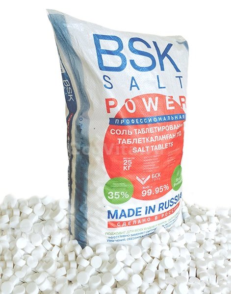 Таблетированная соль БСК используется для регенерации фильтров, работа которых основана на ионном обмене (восстановление ионообменных смол после очищения воды). Один из самых популярных способов умягчения жесткой воды.
