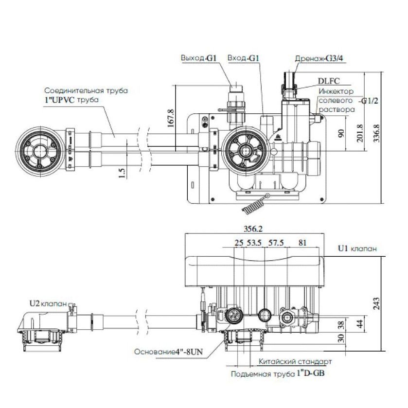 Автоматический клапан управления Runxin F137A с расходомером предназначен для установок умягчения непрерывного действия. Под водоподъемную трубу 32 мм.