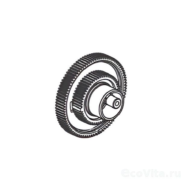 Шестерня соединяет мотор привода с исполнительным устройством, точно определяя положение плунжера для верного распределения водных потоков и оптимального функционирования системы водоочистки.