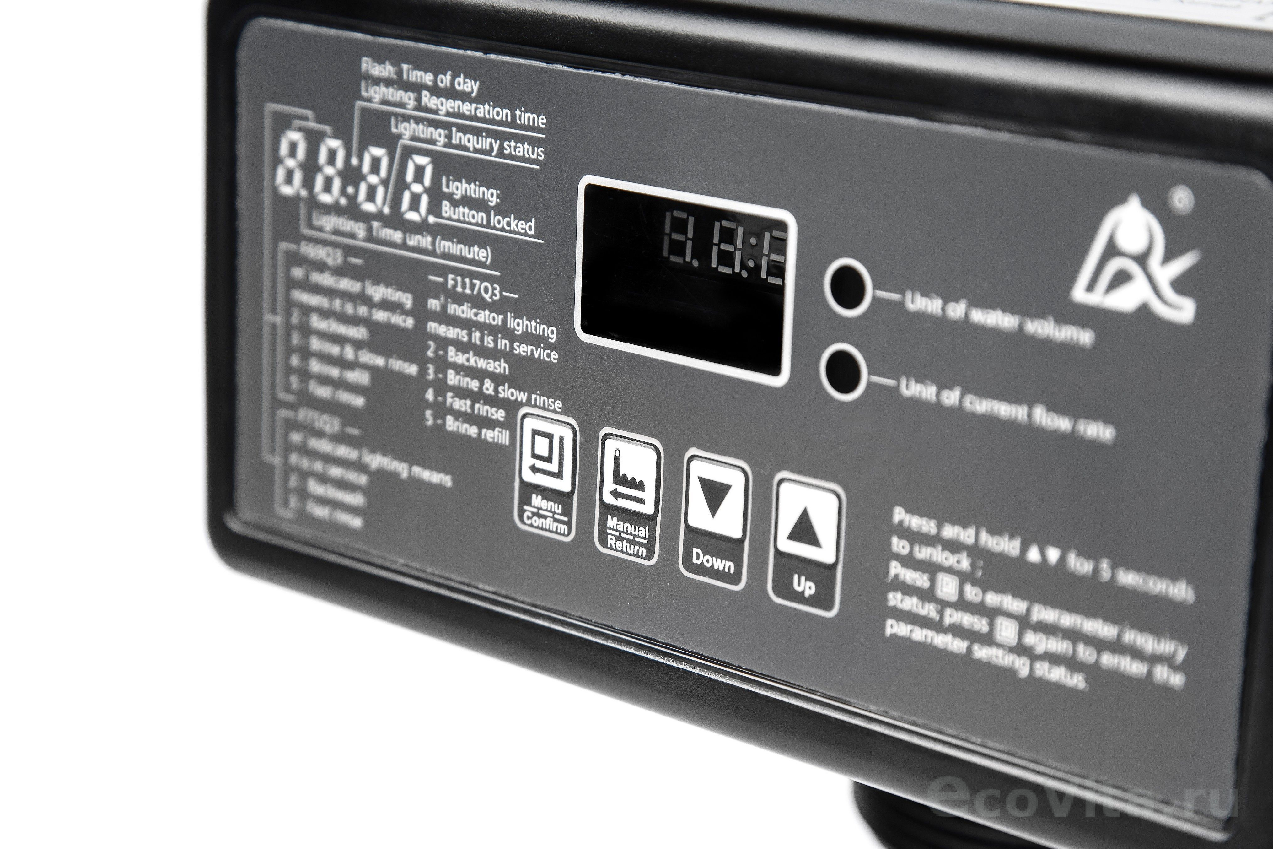 Автоматический клапан управления Runxin F117Q3 со счетчиком предназначен для засыпных умягчителей воды. Применяется для управления процессом промывки и регенерации фильтрующего материала в системах умягчения и обезжелезивания.