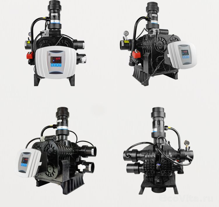 - Наполнение реагентного бака осуществляется в рабочем режиме; режим заполнения солевого бака управляется шаровым клапаном с сервоприводом;