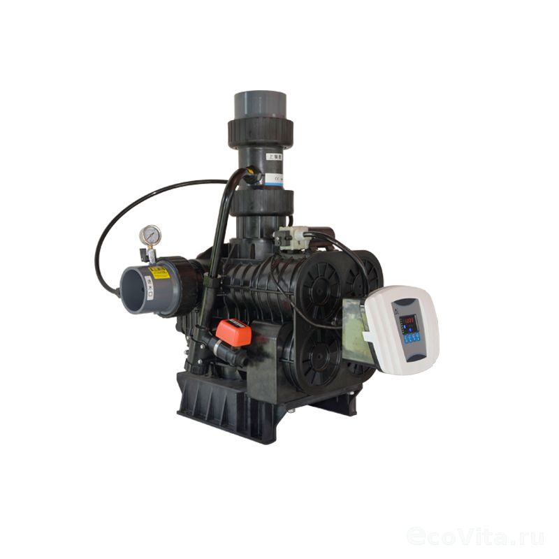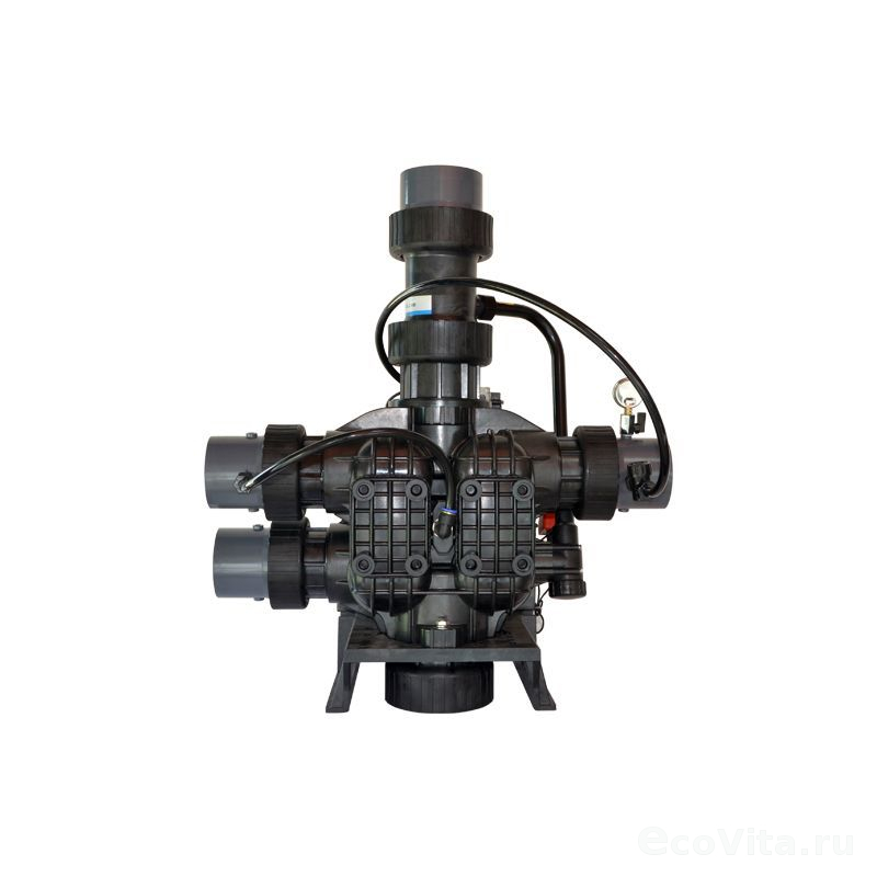 - Наполнение реагентного бака осуществляется в рабочем режиме; режим заполнения солевого бака управляется шаровым клапаном с сервоприводом;
