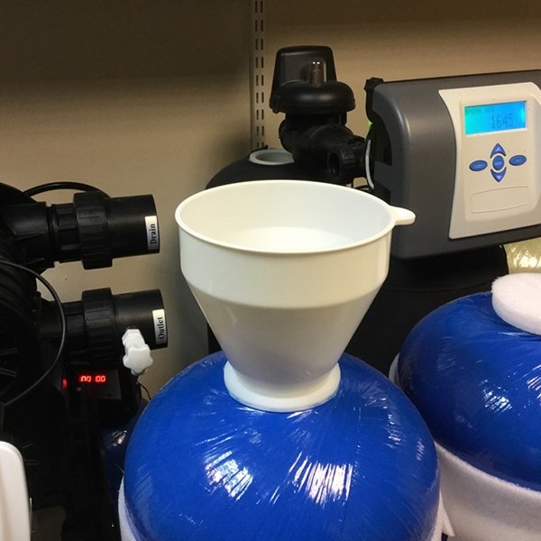 Воронка для засыпки фильтрующих материалов в фильтры колонного типа с отверстием 2 1/2". Позволяет равномерно и аккуратно засыпать расходный материал в корпус фильтра. Воронка выполнена из пластика белого цвета. Оснащена специальным уголком для удобства эксплуатации.