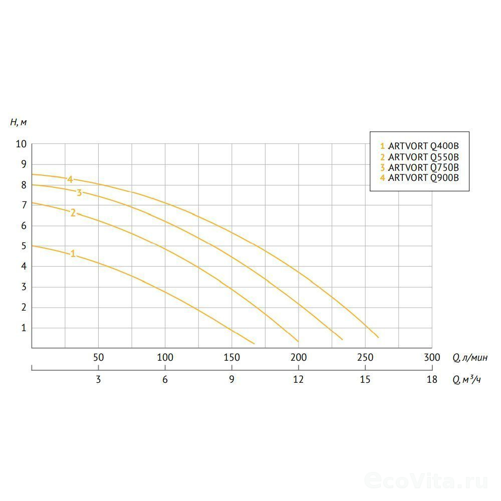 Одноступенчатый дренажный насос с поплавковым выключателем UNIPUMP ARTVORT Q550B предназначен для отведения воды из затопленных помещений; откачивания дождевой воды, воды из открытых водоемов, колодцев, бочек, резервуаров, цистерн.