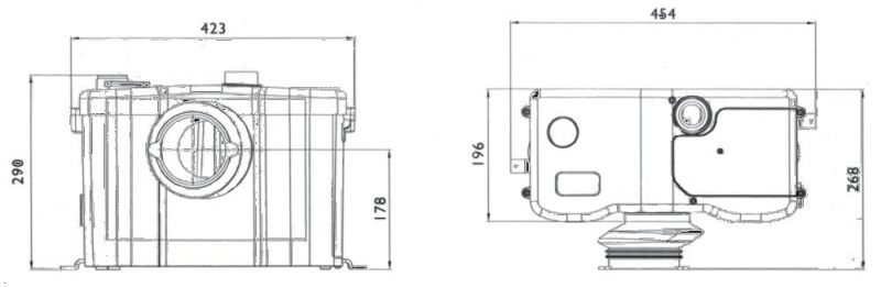 Канализационная установка Speroni WC 670 - устройство для перекачивания сточных вод с датчиком наполнения, который сигнализирует о засорении или переполнении резервуара. Позволяет подключить три полноценных санитарных устройства (унитаз, ванна, душ, раковина, биде и т. д.) там, где традиционные дренажные насосы неудобны, либо их установка невозможна. Данную модель можно использовать для перекачивания воды из стиральных машин. Система полностью автоматизирована.