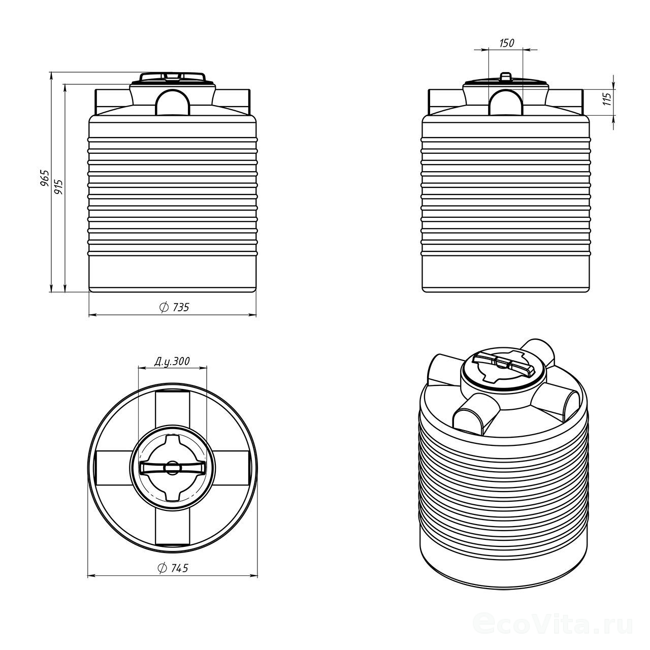 Цилиндрическая Емкость ЭВЛ 300 л подходит для хранения как различных жидкостей (вода, масла, топливо и т. д), так и сыпучих, порошкообразных, гранулированных, вязких и пастообразных продуктов. Объем 300 л. Емкости используются на предприятиях общественного питания, автомойках, а также среди монтажных организаций в сфере водоочистки, водоподготовки и канализации.