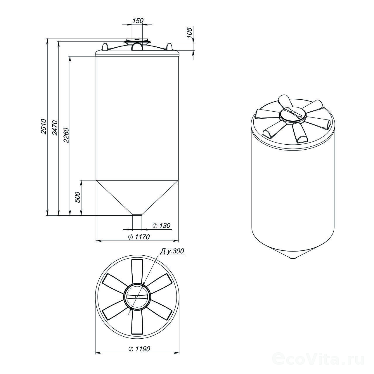 Цилиндрическая Емкость ФМ 2000 л подходит для хранения как различных жидкостей (вода, масла, топливо и т. д), так и сыпучих, порошкообразных, гранулированных, вязких и пастообразных продуктов. Конусное дно, обеспечивает дозированную подачу и полный слив хранящихся в емкости веществ.