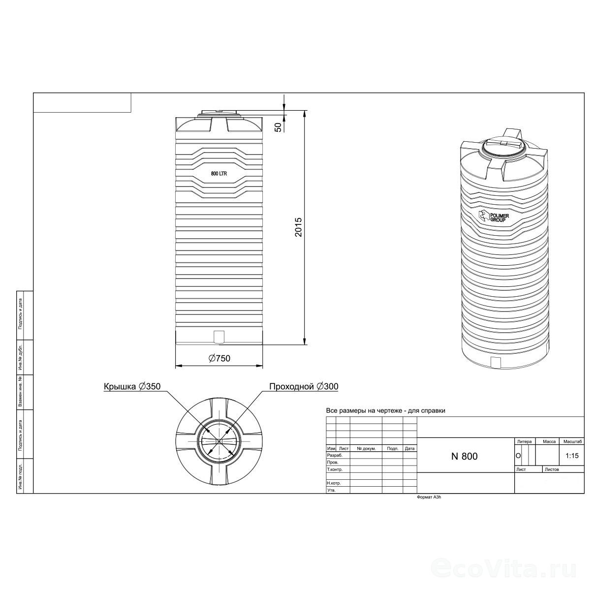 Изготовленная из прочного пластика, данная модель подходит для хранения питьевой и технической воды, дизельного топлива и иных технических жидкостей.