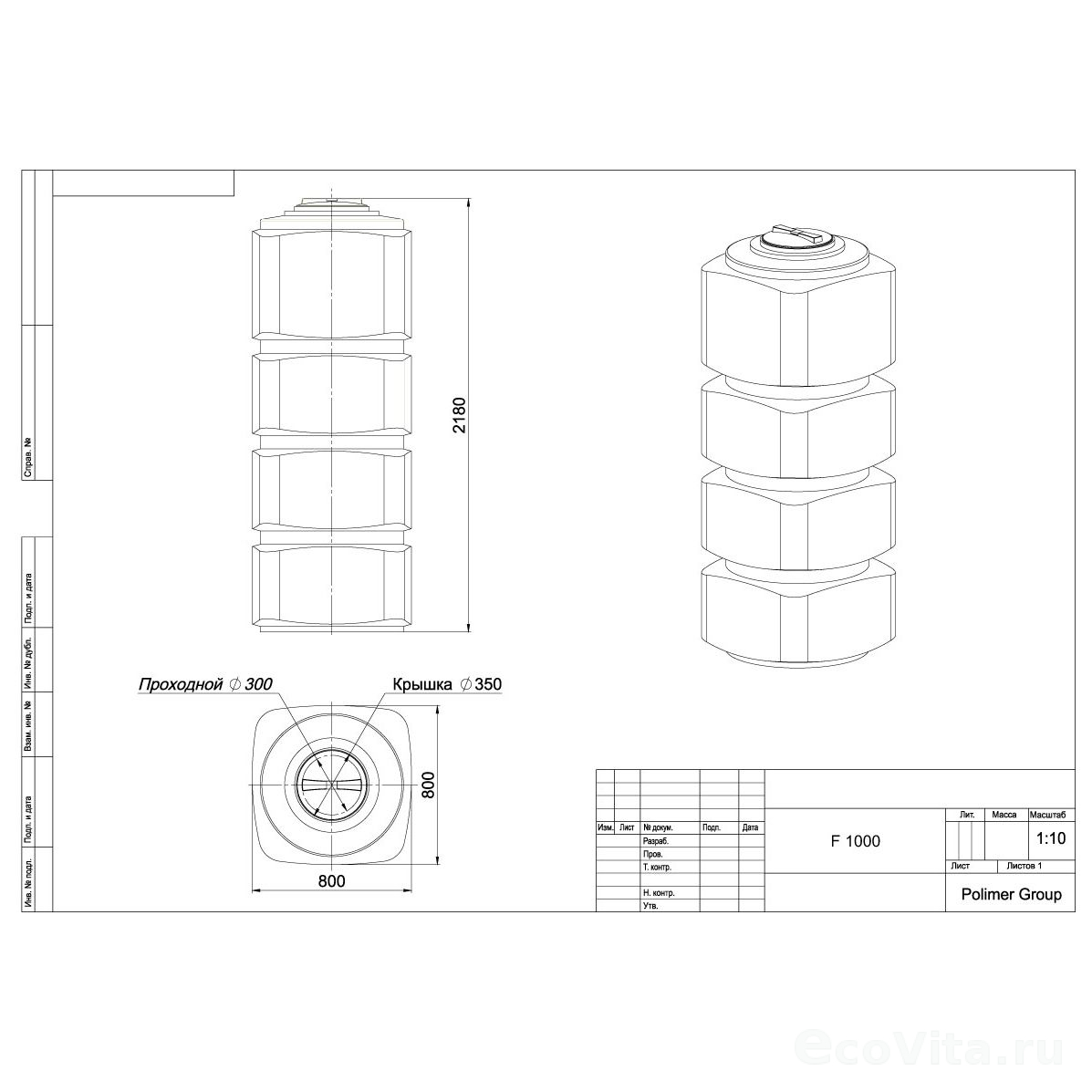 Бак объемом 1000 литров отличается своими компактными размерами, оптимизированными для удобной транспортировки и размещения внутри помещений, беспрепятственно проходящими через стандартные дверные проёмы.