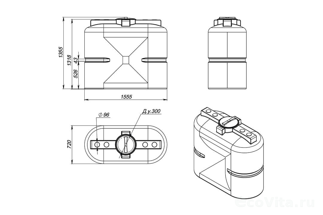 Вертикальная прямоугольная емкость 1000 л предназначена для хранения воды и жидкостей в системах водоподготовки.