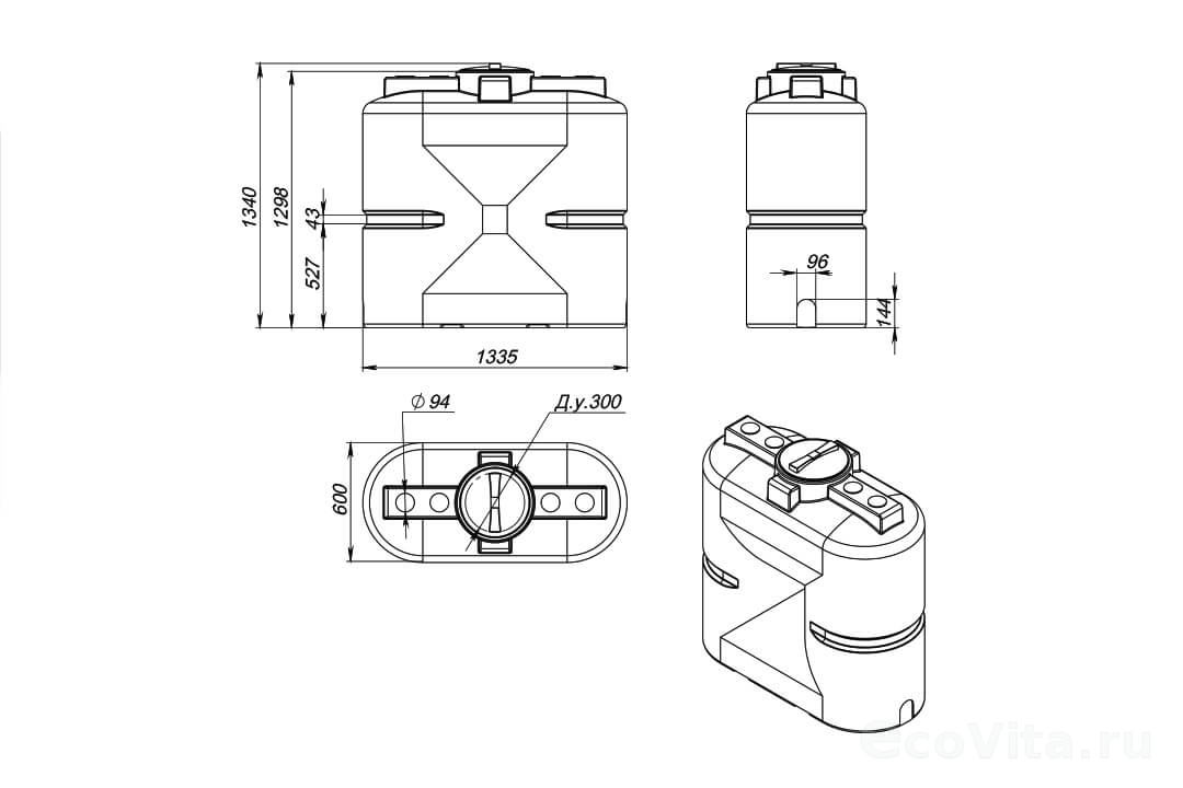 Вертикальная прямоугольная емкость 750 л предназначена для хранения воды и жидкостей в системах водоподготовки.