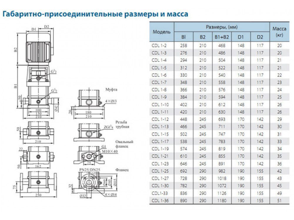 Серия CDLF – вертикальные, многоступенчатые, центробежные, с нормальным всасыванием, высокого напора, с патрубками в одну линию.