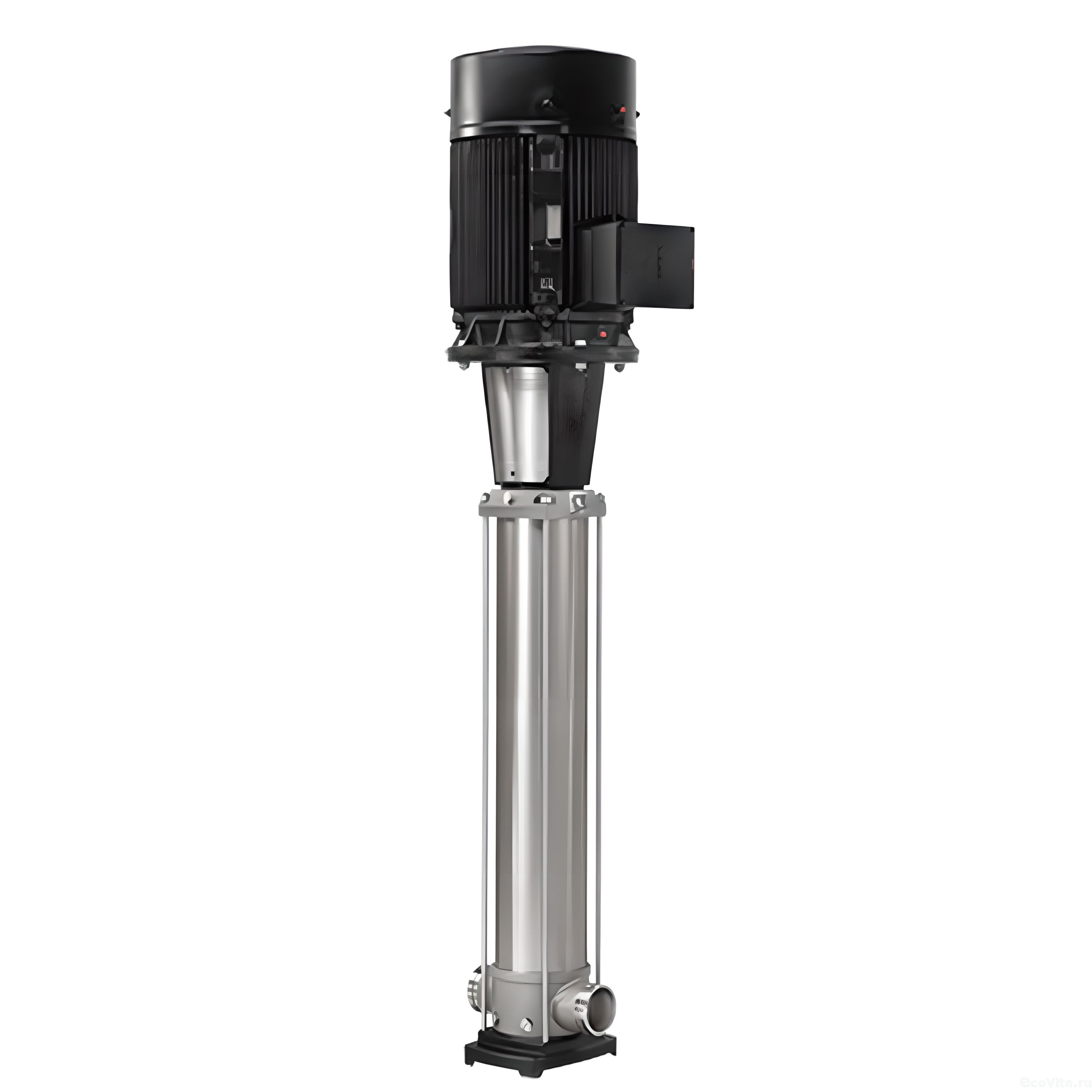 Вертикальное расположение двигателя и насосной части. Впускной и выпускной патрубки находятся на одной оси. Вал двигателя соединяется с валом насоса через муфту. Насос состоит из рабочих ступеней (колесо рабочее, диффузор), установленных в цилиндрический корпус и соединенных при помощи стяжных болтов совместно с основанием или плитой и головной частью. Картриджное торцевое уплотнение.