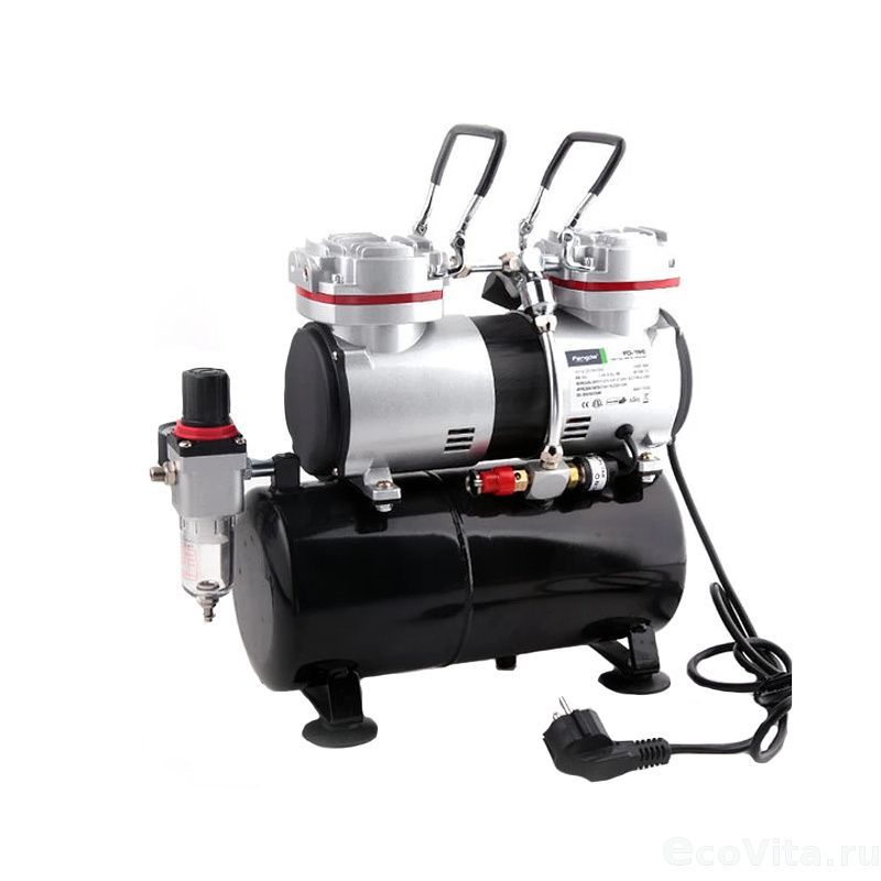 - Безмасляный поршневой компрессор, не загрязняет воздух;