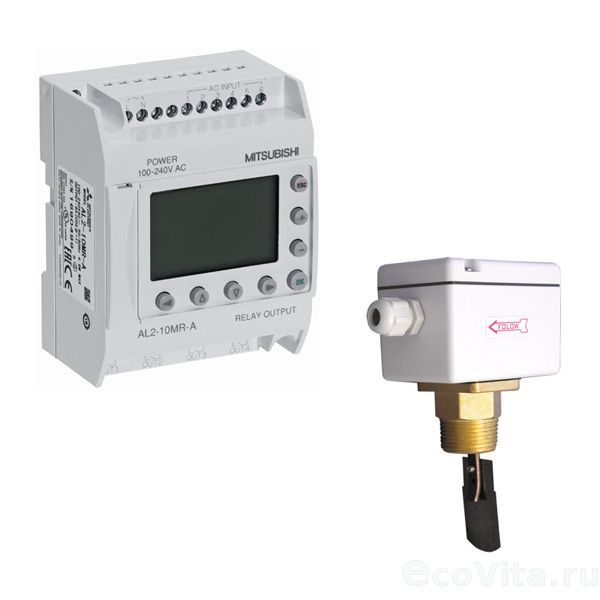 Комплект автоматики для системы непрерывной аэрации состоит из блока управления и датчика потока. Комплект позволяет настроить систему непрерывной подачи воздуха в аэрационную колонну.