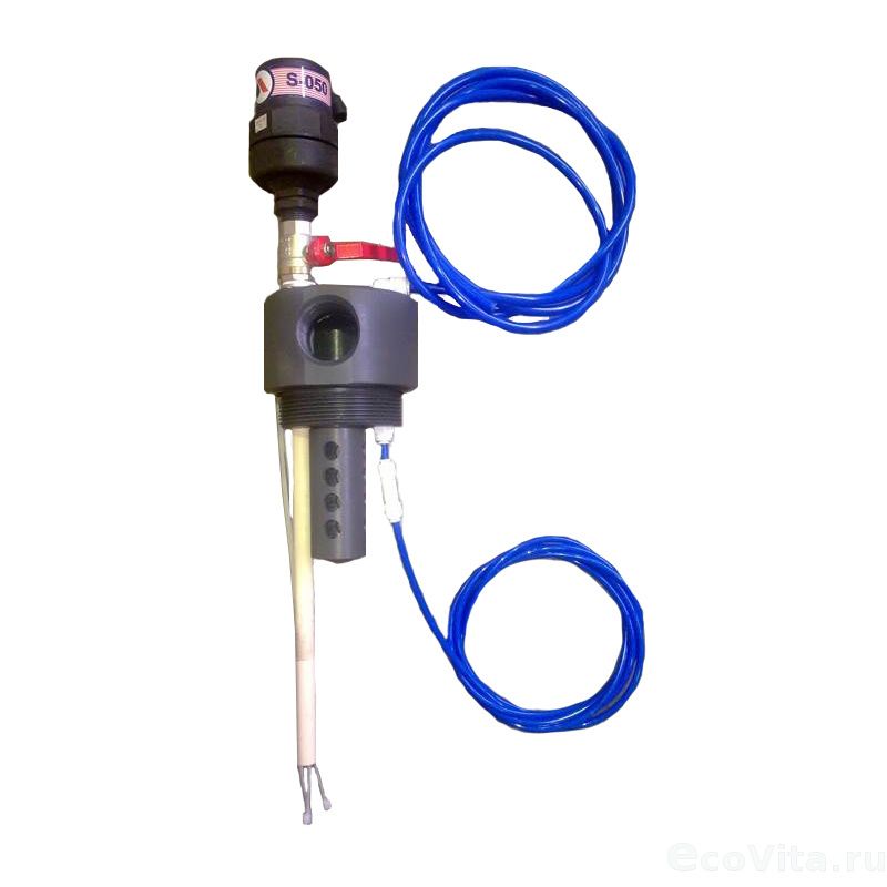 Представляет собой распределительный коллектор с резьбовыми отверстиями для входа и выхода воды, отверстие для подключения трубки подачи воздуха, погруженный внутрь аэрационного корпуса воздуха-отделительный клапан и отверстие для подключения трубки сброса воздуха. В состав комплекта не входит водоподъемная труба.
