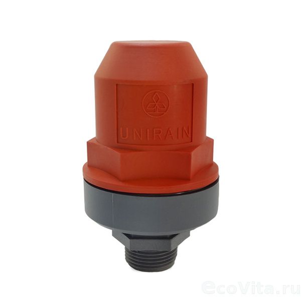 Клапан изготовлен из высококачественной пластмассы, внутренние детали из антикоррозийных материалов. В нижнюю часть клапана вворачивается распределительный оголовок, за счет чего клапан устанавливается на аэрационную колонну. Наличие данного клапана в системе аэрации предотвращает завоздушивание всей системы.