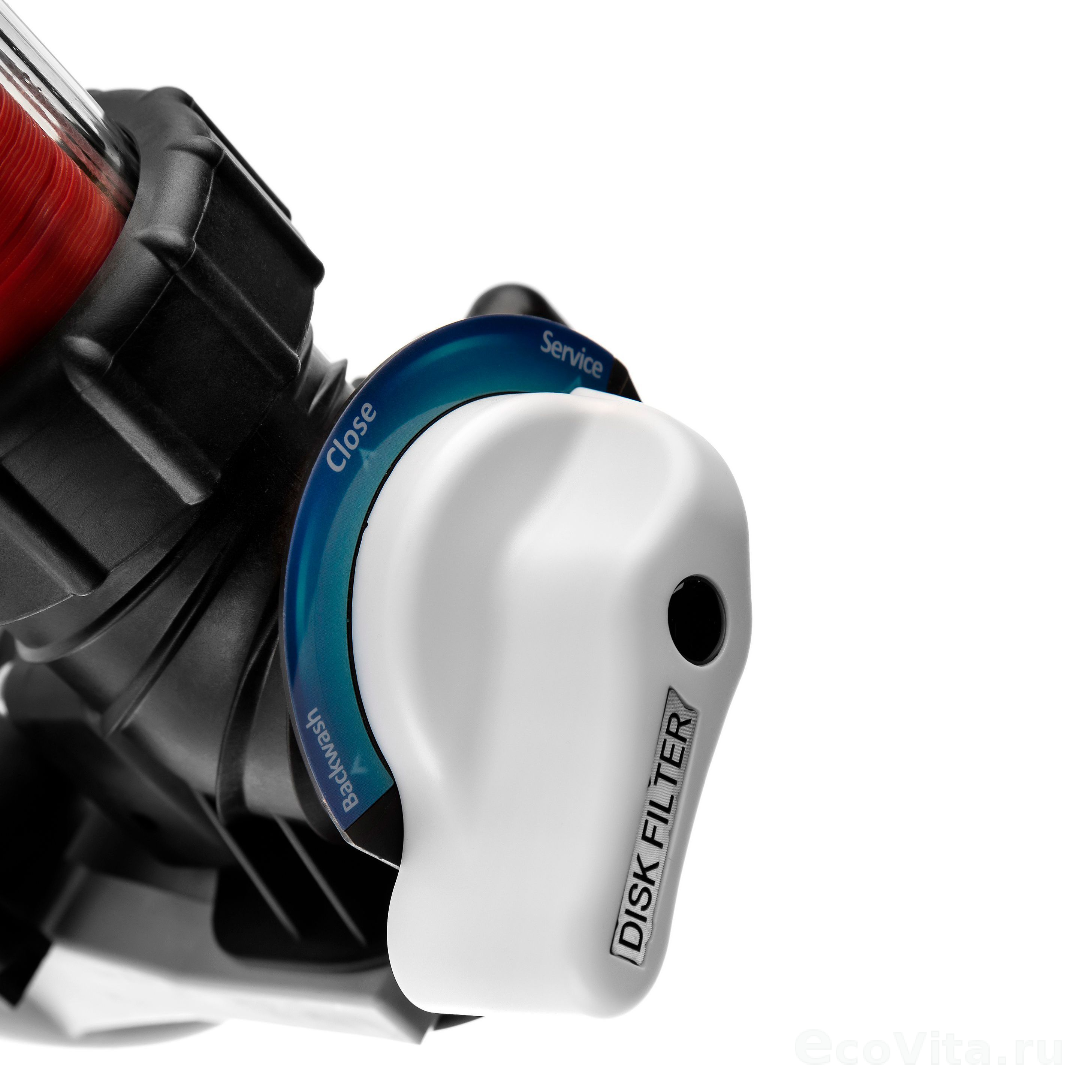 Промывка фильтра производится в ручном режиме. При обратной промывке изменяется направление потока воды. Вода поступает снизу вверх и освобождает диски. Поток воды производит промывку изнутри наружу, при этом диски вращаются.