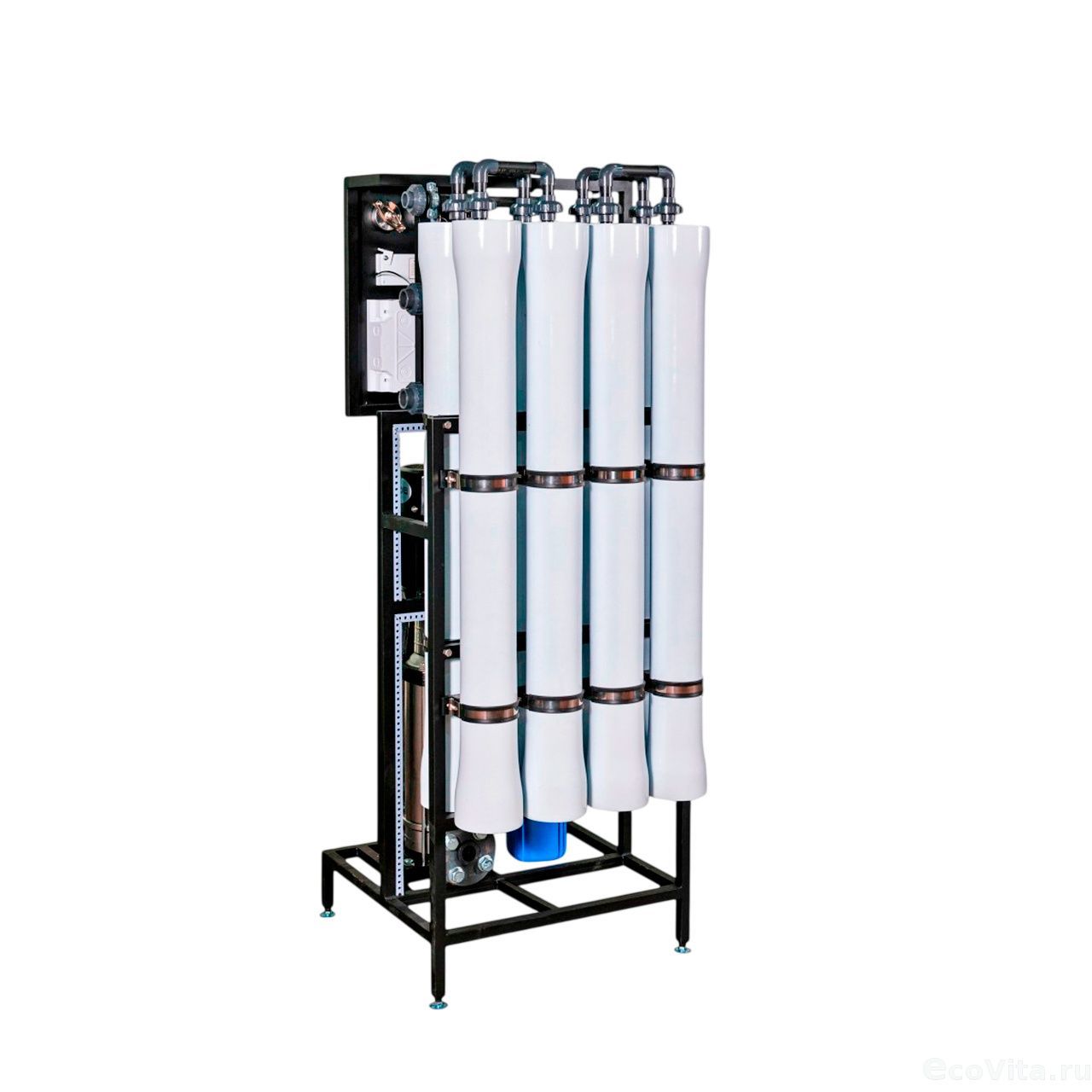 Установка обратного осмоса Гейзер RO 8x4040 вертикальная комплектация используется для очистки и снижения общей минерализации воды подземных и поверхностных источников хозяйственно-питьевого водоснабжения по Сан-ПиН 2.1.4.1074-01. КПД установки (извлечение фильтрата): 50-65%. Потребление исходной воды: 2000 л/час.
