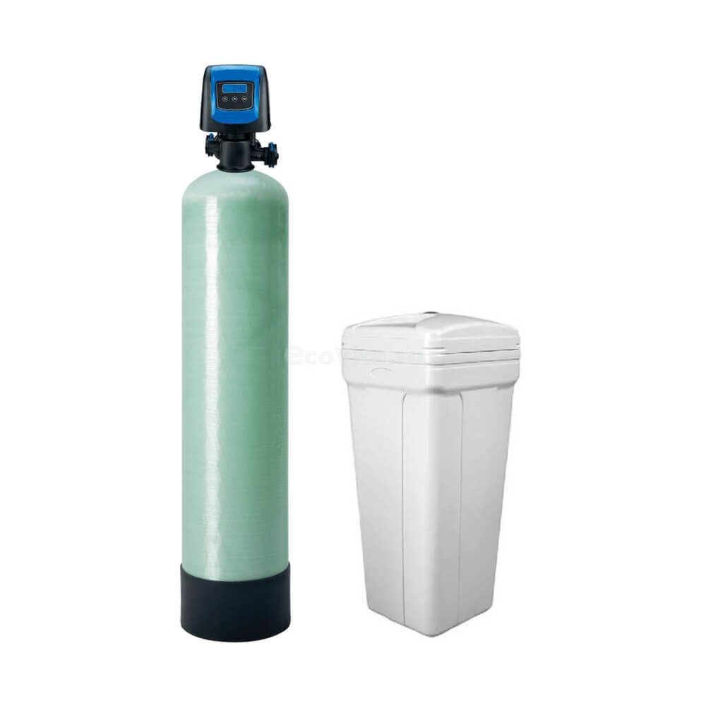 Умягчитель Ecovita EVS 13 FM с управлением по расходу воды. В зависимости от вида загрузки способен удалять соли жесткости, железо, марганец, органические вещества, тяжелые металлы и нитраты. Подходит для небольшого коттеджа или загородного дома.