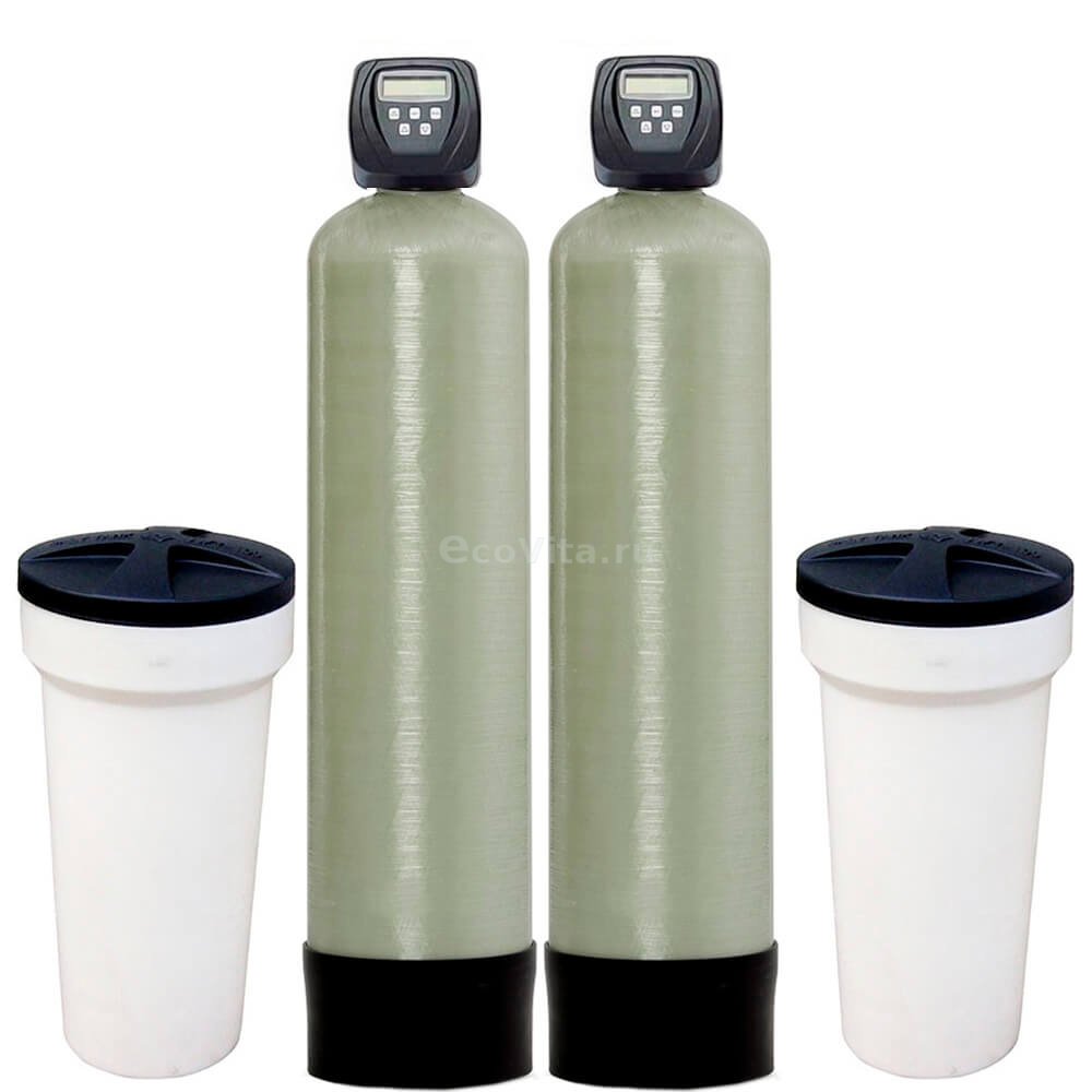 Система непрерывного умягчения Ecovita EVS 21 CM Duplex на базе 2-х корпусов и 2-х блоков управления с промывкой по времени и по расходу.