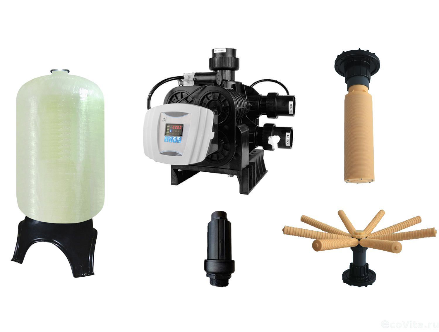 Система фильтрации Ecovita EVF 42 RT с автоматическим управлением в зависимости от вида загрузки способна удалять железо, марганец, механические частицы, органические вещества, тяжелые металлы и нитраты и т.д.