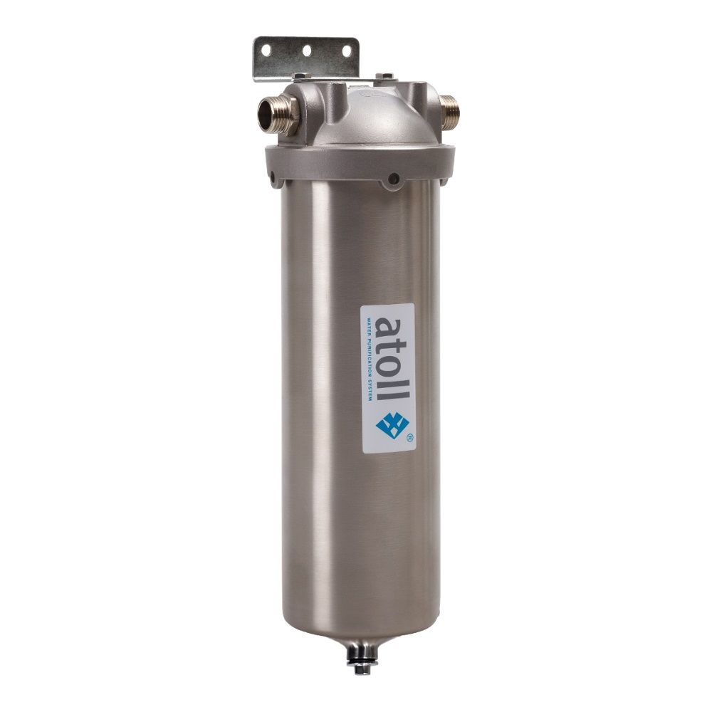 Корпус магистрального фильтра Atoll I-11SMd-e STD из нержавеющей стали с дренажем, типоразмер 10 SL. Предназначен для работы с холодной и горячей водой в домашнем, коммерческом и промышленном хозяйстве. В зависимости от установленного картриджа может производить очистку от: механических примесей (ржавчина, окалина, песок и т.д.), хлора и органических соединений, солей жесткости, железа и марганца.