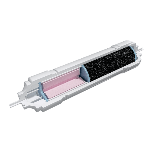- Обратноосмотическая мембрана — 3х-слойное полотно мембраны на основе тонкопленочного полиамидного композита с порами диаметром 0,0001 мкм. Диаметр пор настолько мал, что они пропускают только молекулы воды и газов. Производительность: 100 галлонов в сутки;