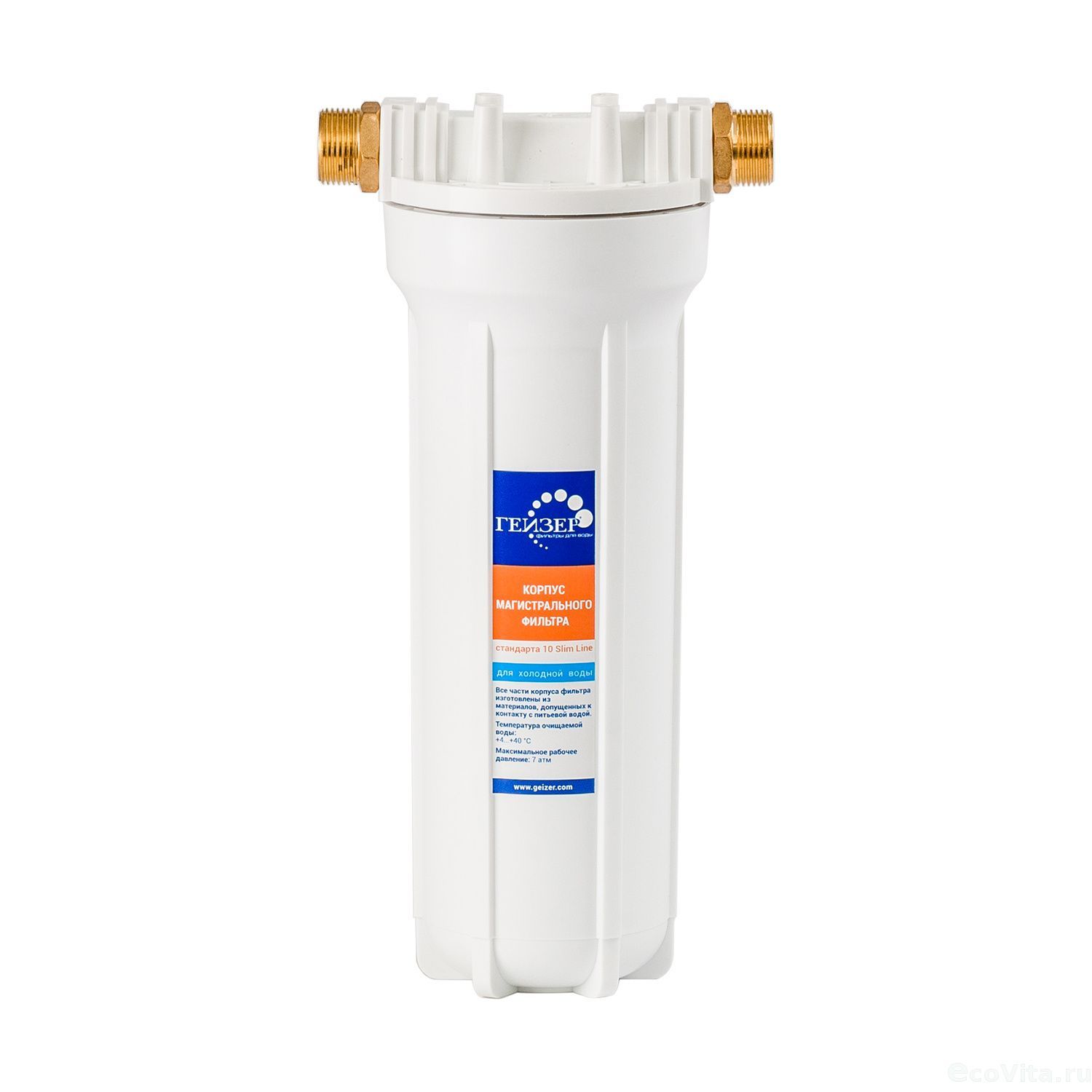 Корпус Гейзер 10SL 3/4" устанавливается на "входе" холодной воды в квартиру или загородный дом. В зависимости от установленного картриджа может производить очистку от: механических примесей (ржавчина, окалина, песок и т.д.), хлора и органических соединений, солей жесткости, железа и марганца. Рассчитан на работу под давлением. Корпус Гейзер 10SL 3/4" изготовлен из прочного белого полипропилена с пластиковыми ниппелями. В производстве используются материалы пищевого класса.
