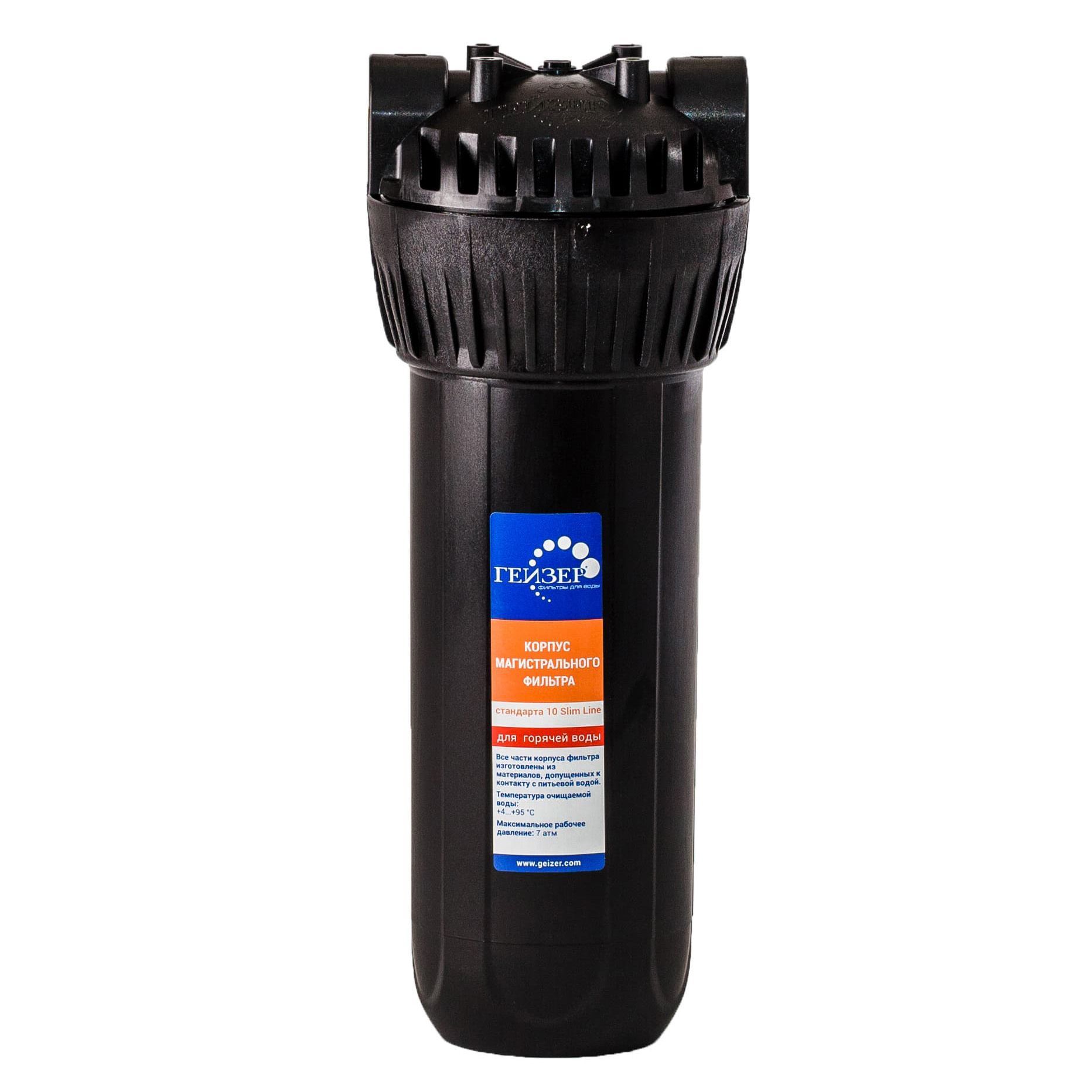 Корпус Гейзер 10"SL 3/4" устанавливается на "входе" горячей воды в квартиру или загородный дом. В зависимости от установленного картриджа может производить очистку от: механических примесей (ржавчина, окалина, песок и т.д.), хлора и органических соединений, солей жесткости, железа и марганца. Рассчитан на работу под давлением. В производстве корпусов используются только материалы пищевого класса.