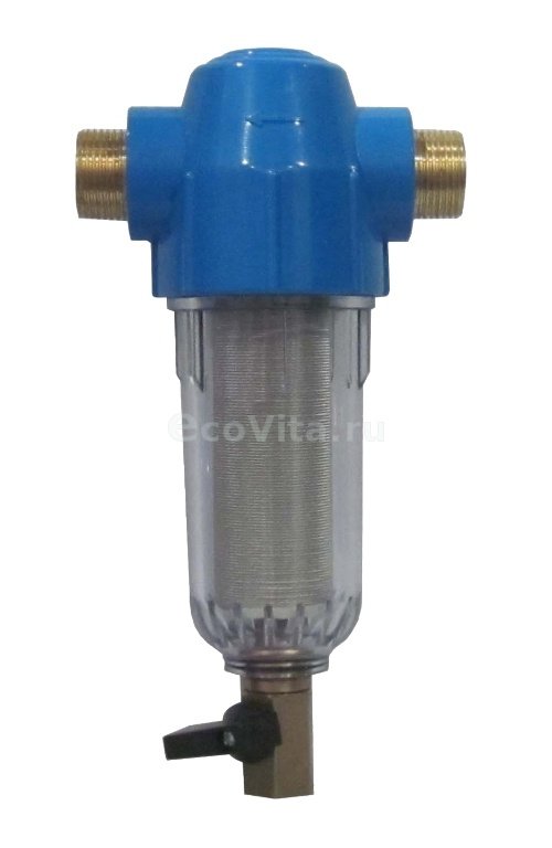 - Прозрачная колба позволяет следить за накоплением загрязнений в фильтре