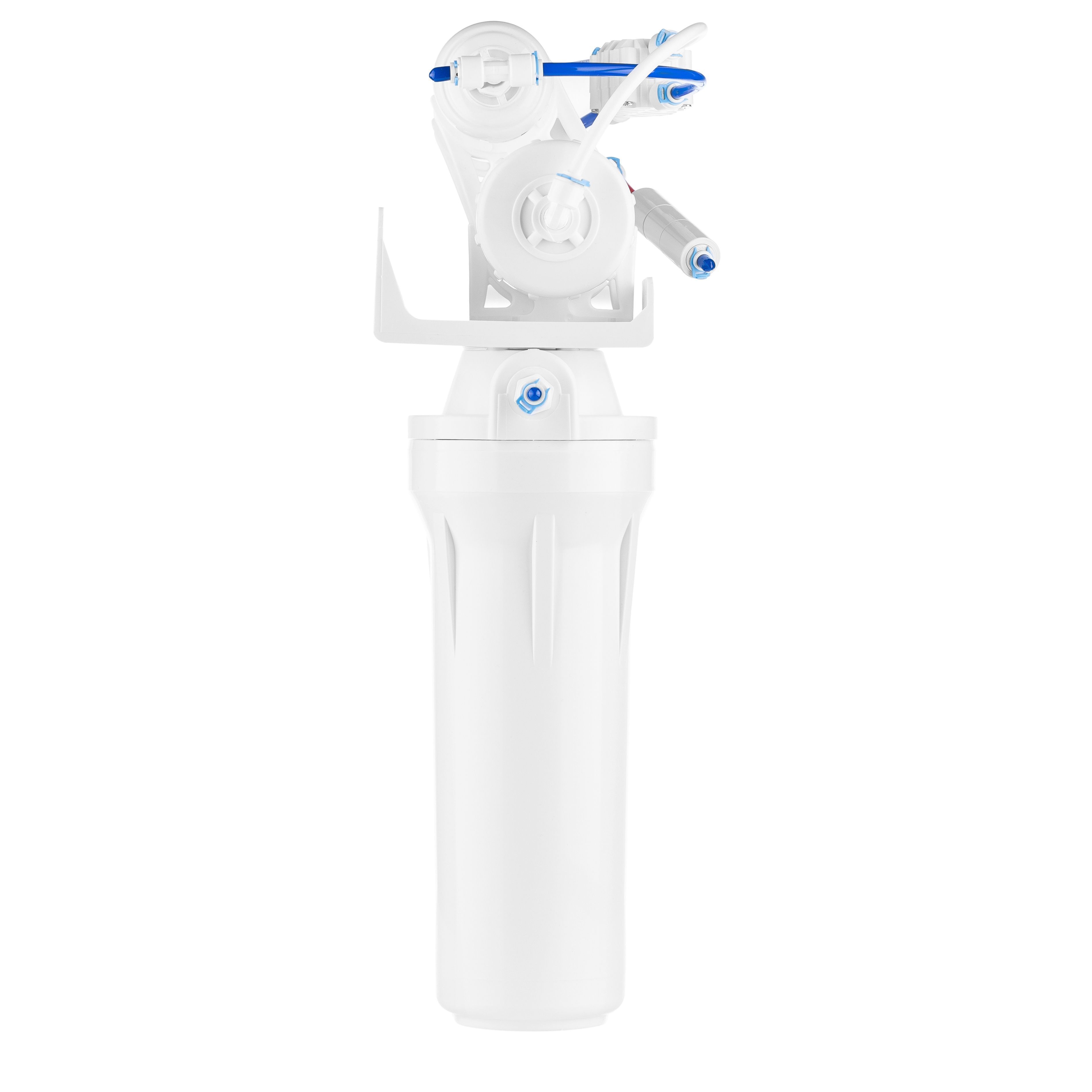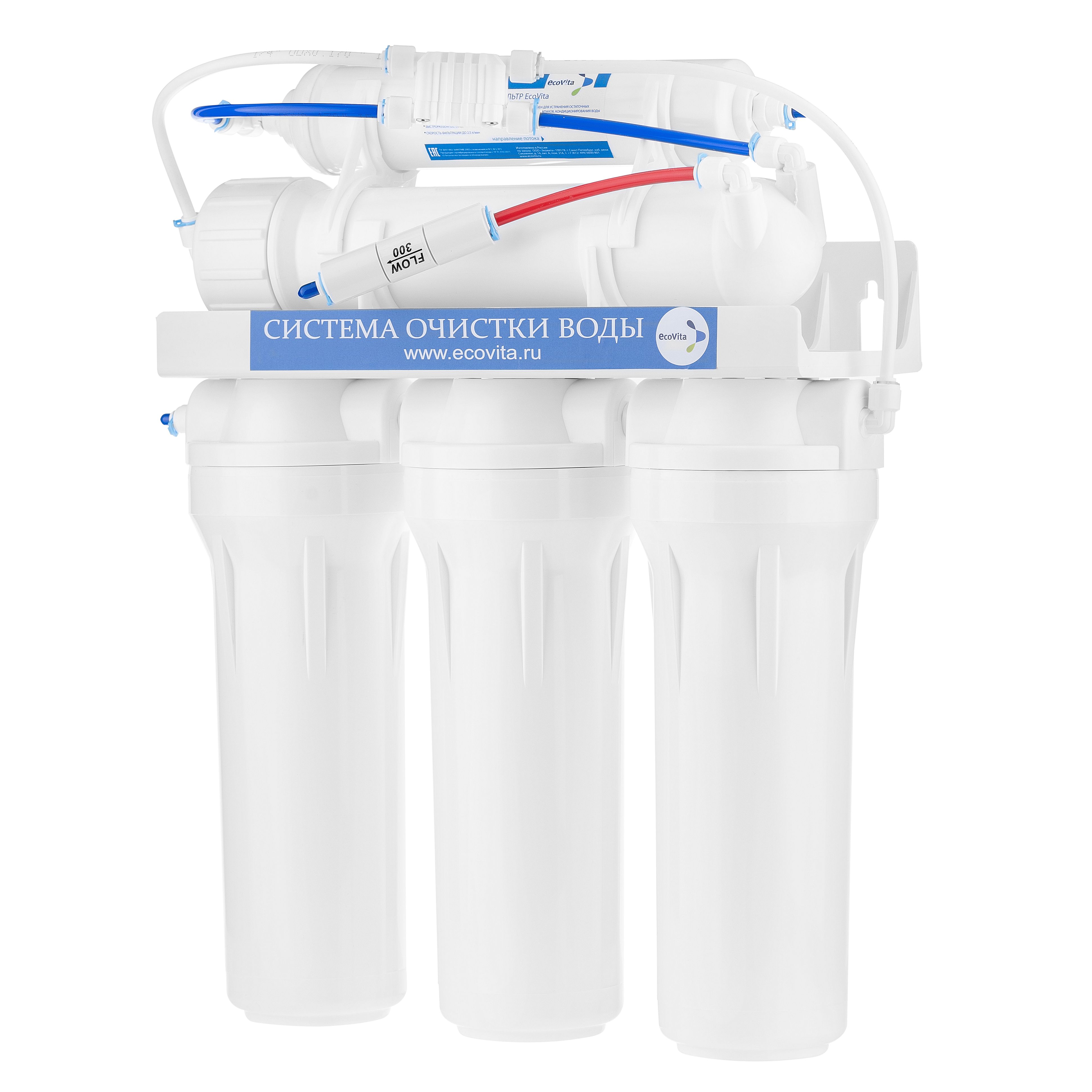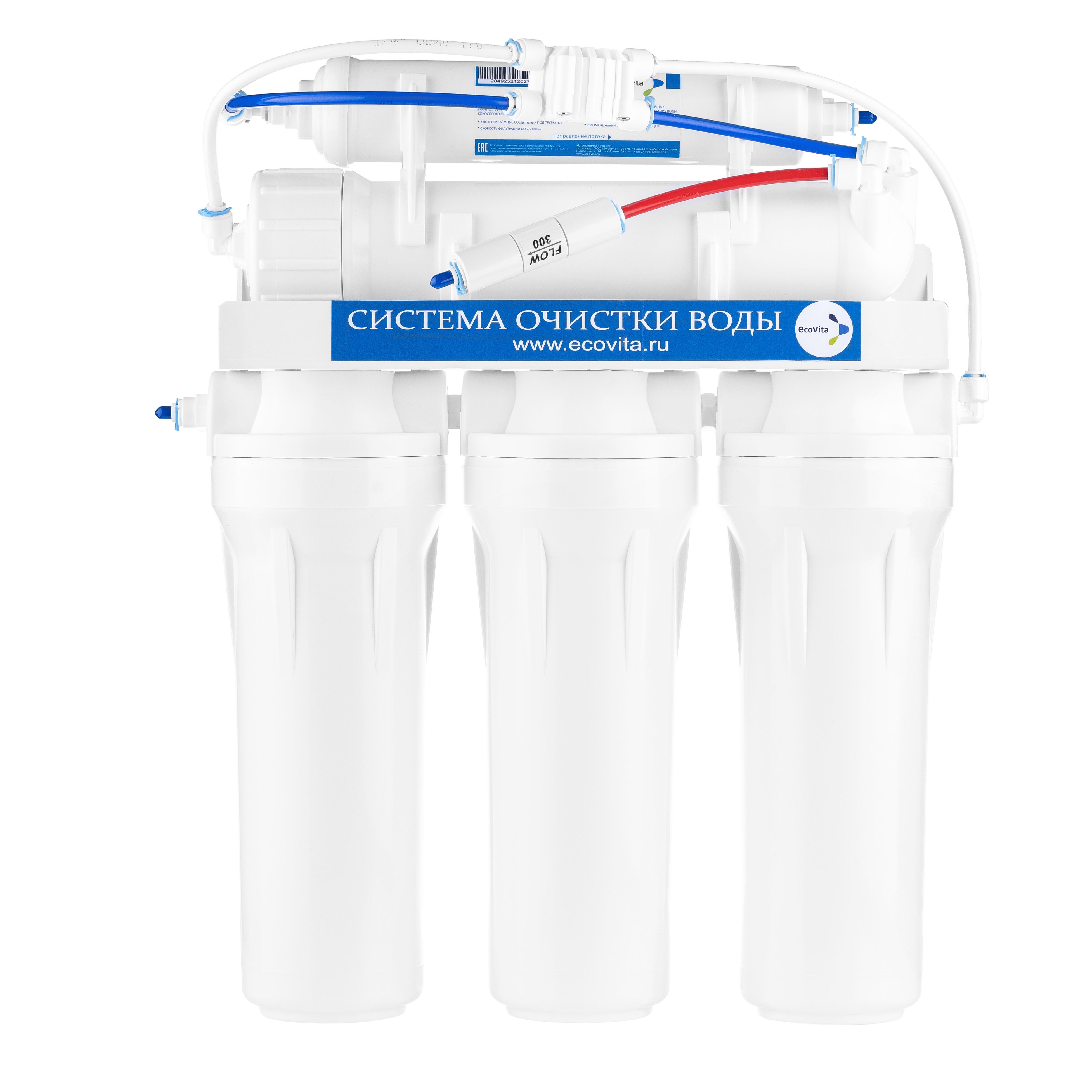 Система очистки воды на основе обратного осмоса Ecovita Osmo 5-50 предназначена для доочистки воды в бытовых условиях для ее последующего использования для питья, приготовления пищи и других целей. Представляет собой систему, которая удаляет до 99,9% всех примесей содержащихся в воде и предотвращает образование накипи в нагревательных приборах. Производительность - 120 литров в сутки. Фильтрация осуществляется за счет прохождения воды под напором через полупроницаемую мембрану, которая пропускает только молекулы воды и кислорода.