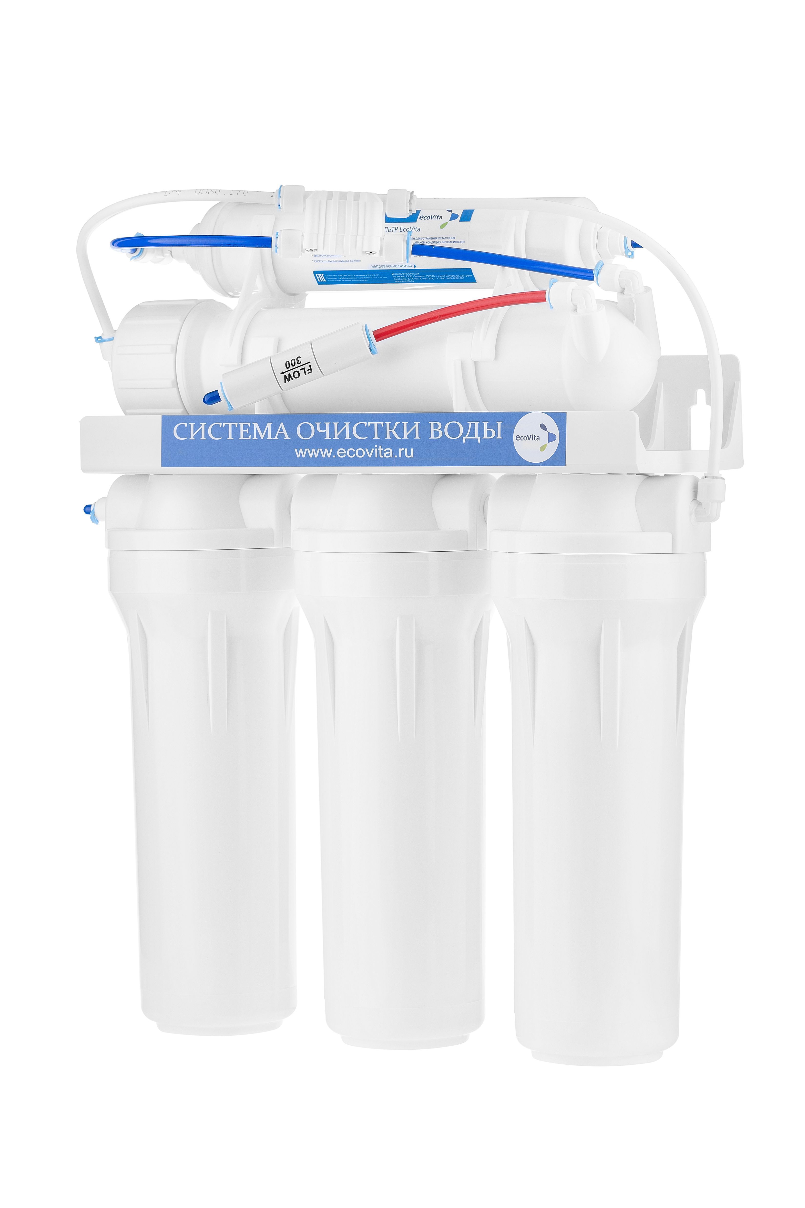 Система очистки воды на основе обратного осмоса Ecovita Osmo 5-50M предназначена для доочистки воды в бытовых условиях для ее последующего использования для питья, приготовления пищи и других целей. Представляет собой систему, которая удаляет до 99,9% всех примесей содержащихся в воде и предотвращает образование накипи в нагревательных приборах. Производительность - 120 литров в сутки. Фильтрация осуществляется за счет прохождения воды под напором через полупроницаемую мембрану, которая пропускает только молекулы воды и кислорода.