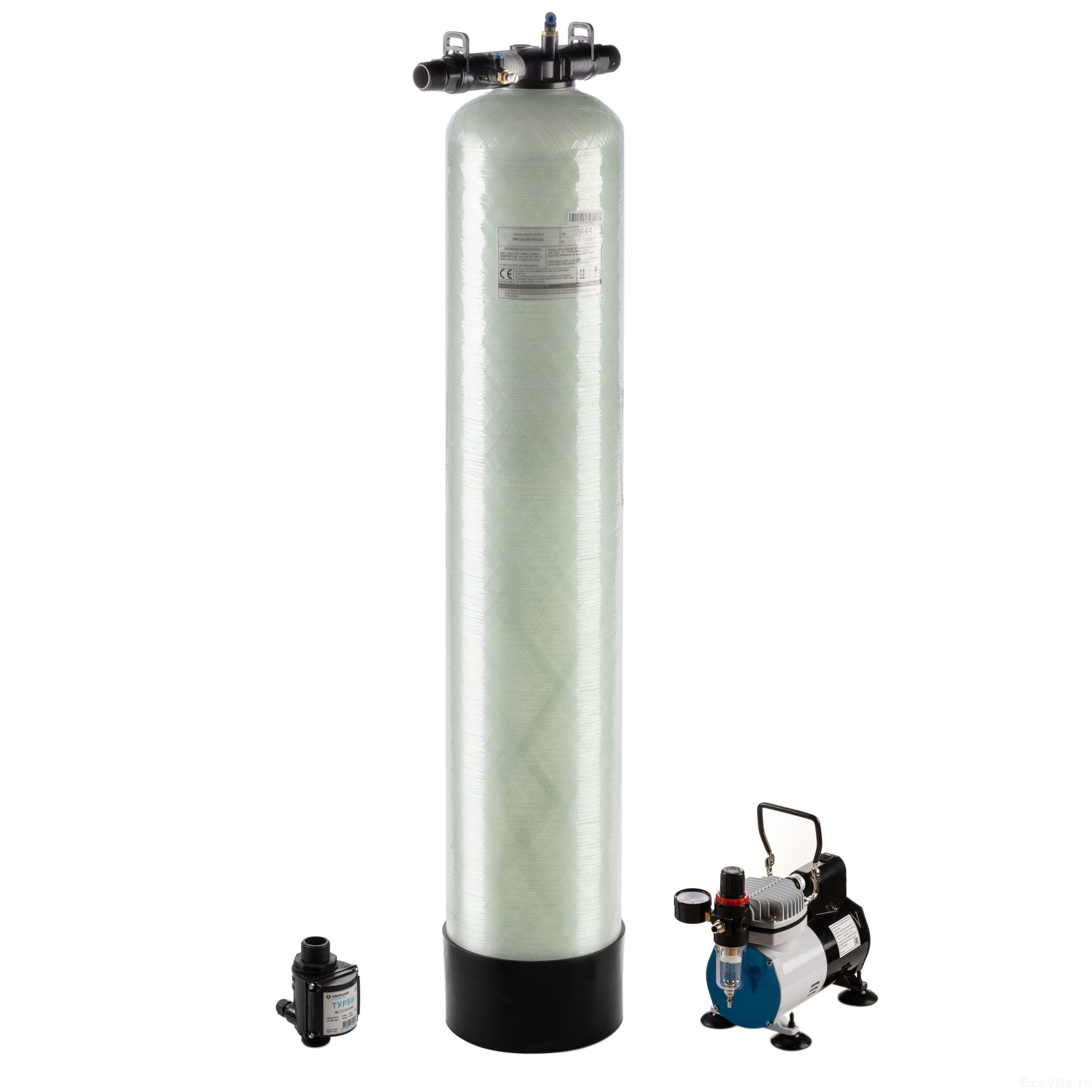 Для фильтрации окисленных соединений используются фильтры с зернистой загрузкой, обладающей большой грязеемкостью — приобретаются отдельно.