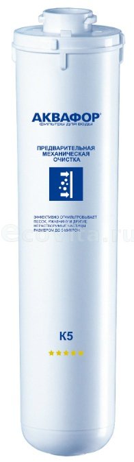 Сменный модуль Аквафор К5 представляется собой корпус с полипропиленовым модулем для механической предочистки воды. Эффективно удаляет песок, ржавчину и другие нерастворимые частицы. Используется в стационарных системах очистки питьевой воды Аквафор Кристалл Квадро, Осмо Морион и Кристалл Осмо.