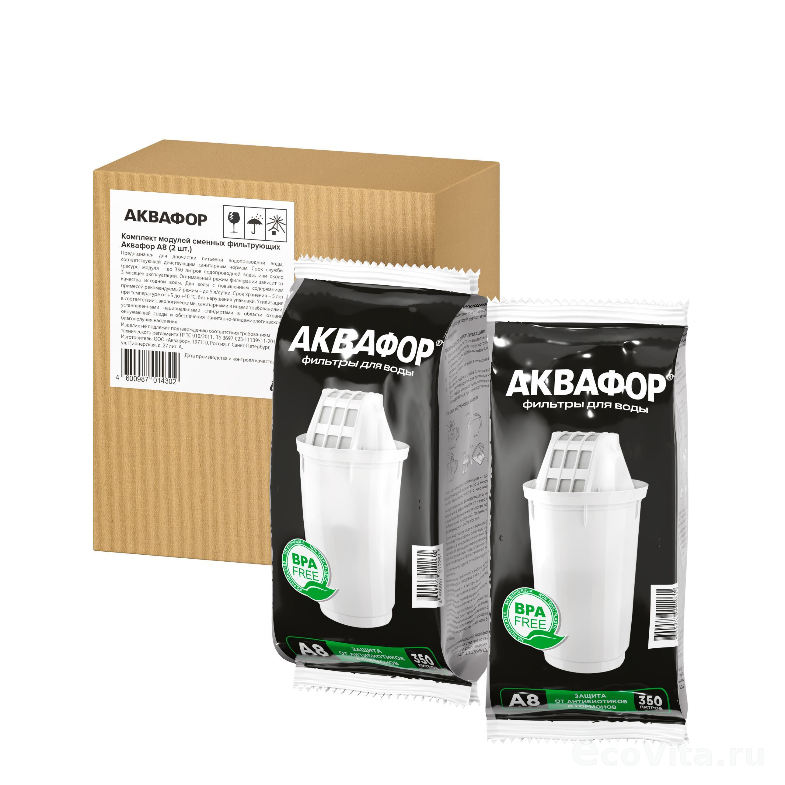 Комплект из двух сменных модулей АКВАФОР А8 изготовлен на основе уникальных запатентованных технологий бренда. Картридж A8 устойчив к преждевременному засорению, успешно справляется с очисткой даже сильно загрязненной воды, удаляя механические частицы, химические вещества и следы лекарств, включая антибиотики и гормональные препараты.
