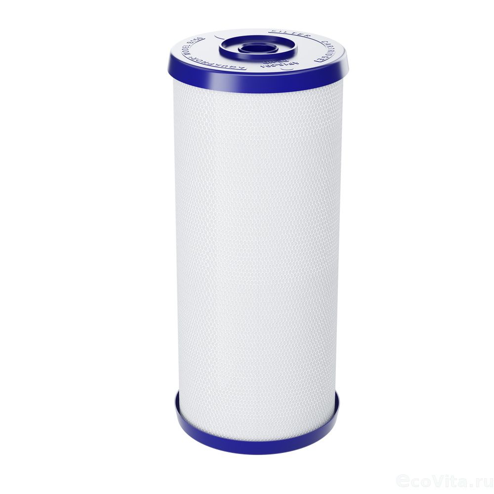 - изготовлен по технологии карбон-блок с волокном и использованием мелкодисперсного активированного кокосового угля. Удаляет из воды органические примеси и активный хлор;