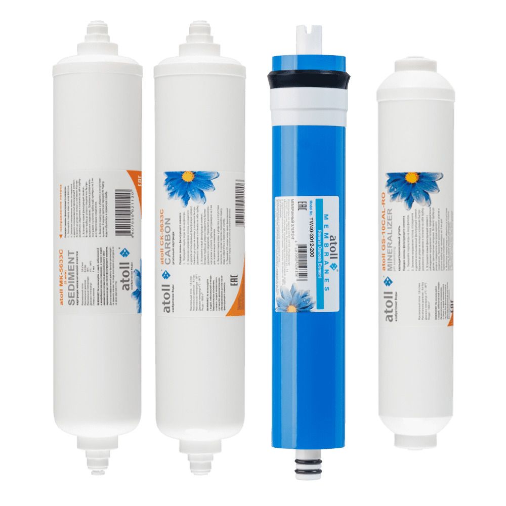 Набор фильтров Atoll №114m STDA для замены элементов в системах обратного осмоса. Подходит для Atoll A-4200m Slim. Рекомендуемый срок замены: 2,5 - 3 года.