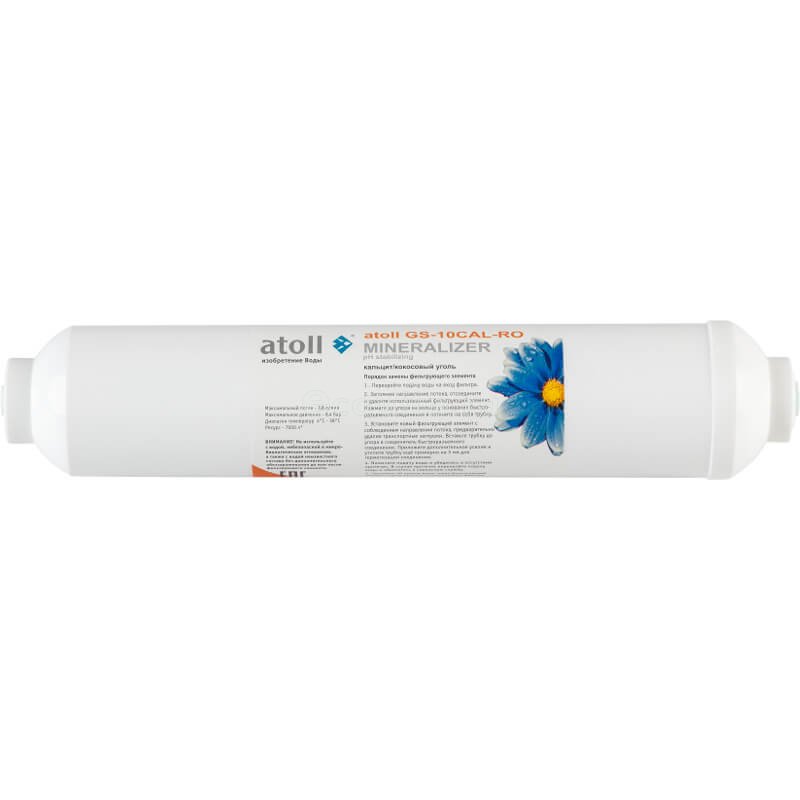 Минерализатор-постфильтр Atoll GS-10CAL/RO с кальцитом применяется в системах обратного осмоса в качестве последней ступени очистки. Основная задача - финишная очистка и улучшения вкусовых качеств воды в системах обратного осмоса.
