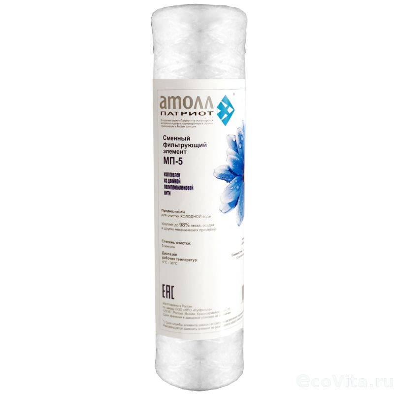Фильтрующий сменный элемент Atoll Паториот МП-5 намотка предназначен для удаления механических загрязнений (песок, ржавчина, осадок). Обладает высокой устойчивостью к воздействию большинства кислот, щелочей, агрессивных жидкостей и газов.
