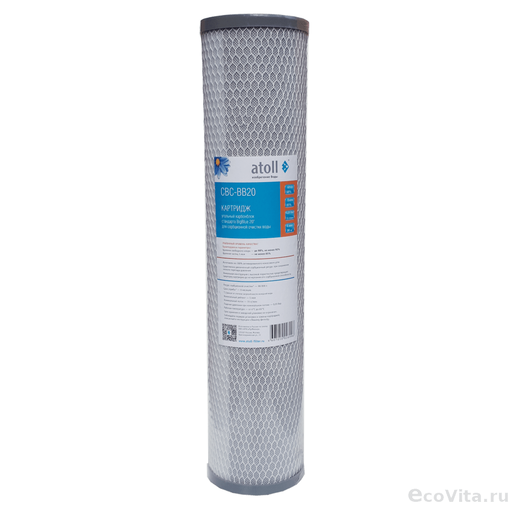Фильтрующий сменный элемент Atoll CBC-BB20 предназначен для тонкой сорбционной и антибактериальной очистки. Уникальная структура углеродного блока удаляет цисты лямблий, криптоспоридий, энтамеб и токсоплазм. Обладает увеличенным ресурсом по хлору. Конструкция модуля позволяет использовать картридж до полного истощения абсорбционной способности и максимально использовать фильтрующую способность угля. Модуль изготовлен по уникальной технологии карбон-блок.